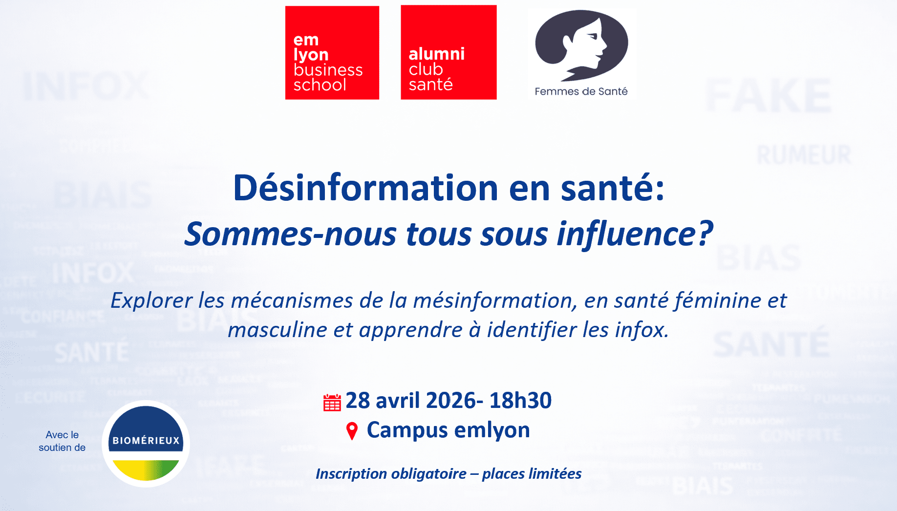 Le Club Santé emlyon alumni et le collectif Femmes de Santé ont le plaisir de vous convier à une soirée d’échange pour :
